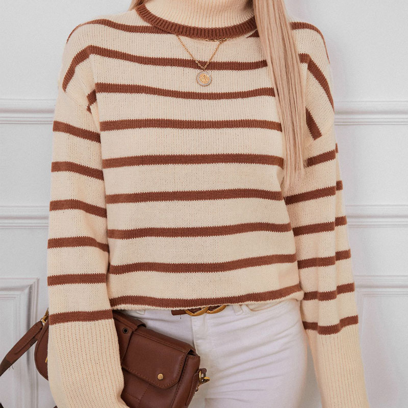Полосатый свитер для женщин - очень элегантный стиль, и его можно сопоставить с разными стилями, поэтому он имеет хорошие продажи каждый год, а также классический стиль, который должен производиться крупными брендами производства свитера. Из -за уникального дизайна высокого воротника, если материал недостаточно мягкий и дышащий, он сделает кожу на шею зудящей, неудобной и т. Д.